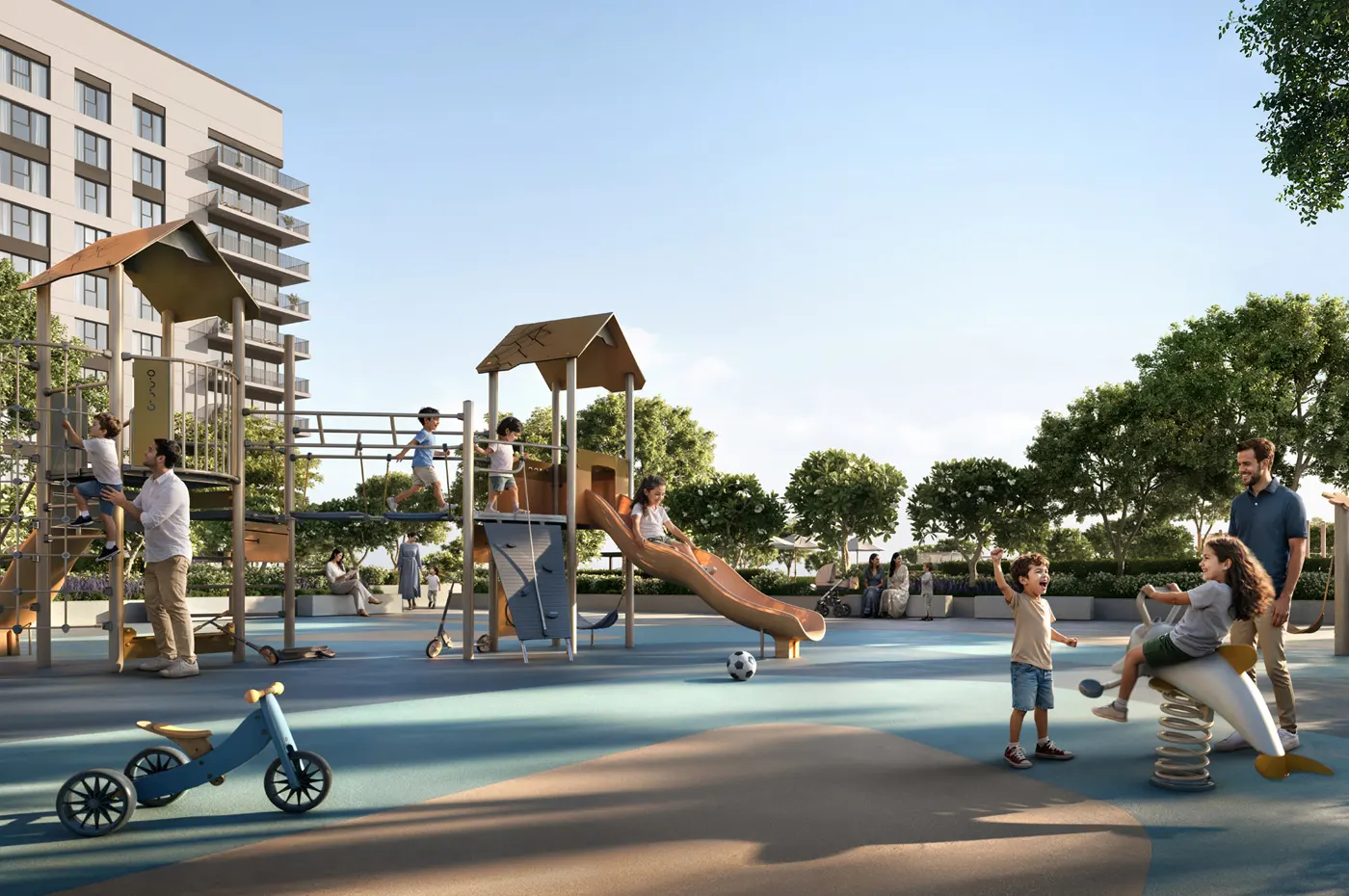 Apartments range from 672 sq. ft. The 3-bedroom townhouses are 2,789 to 2,816 sq. ft – big by Dubai South standards.
